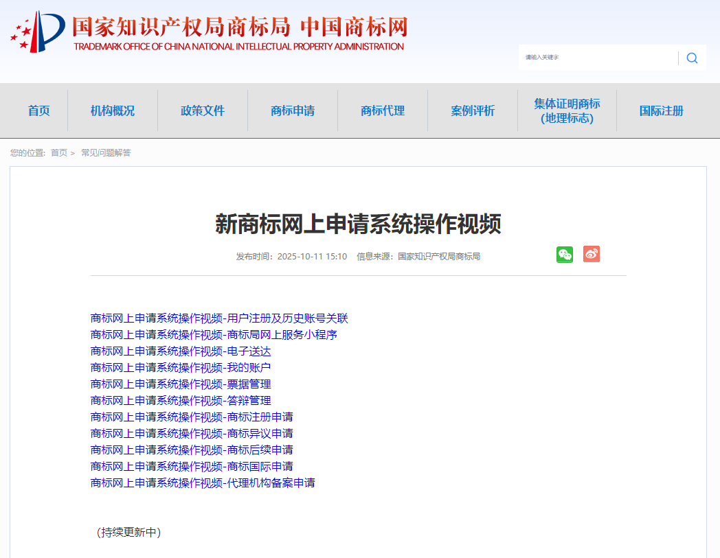 《新商标网上申请系统操作视频》及《新旧商标网上申请系统变化情况介绍》官网网址《新商标网上申请系统操作视频》(信息来源:国家知识产权局商标局)https://sbj.cnipa.gov.cn/sbj/cjwtjd/202510/t202510···